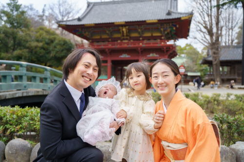 根津神社でのお宮参り、七五三を記念に残すための出張撮影サービスです。